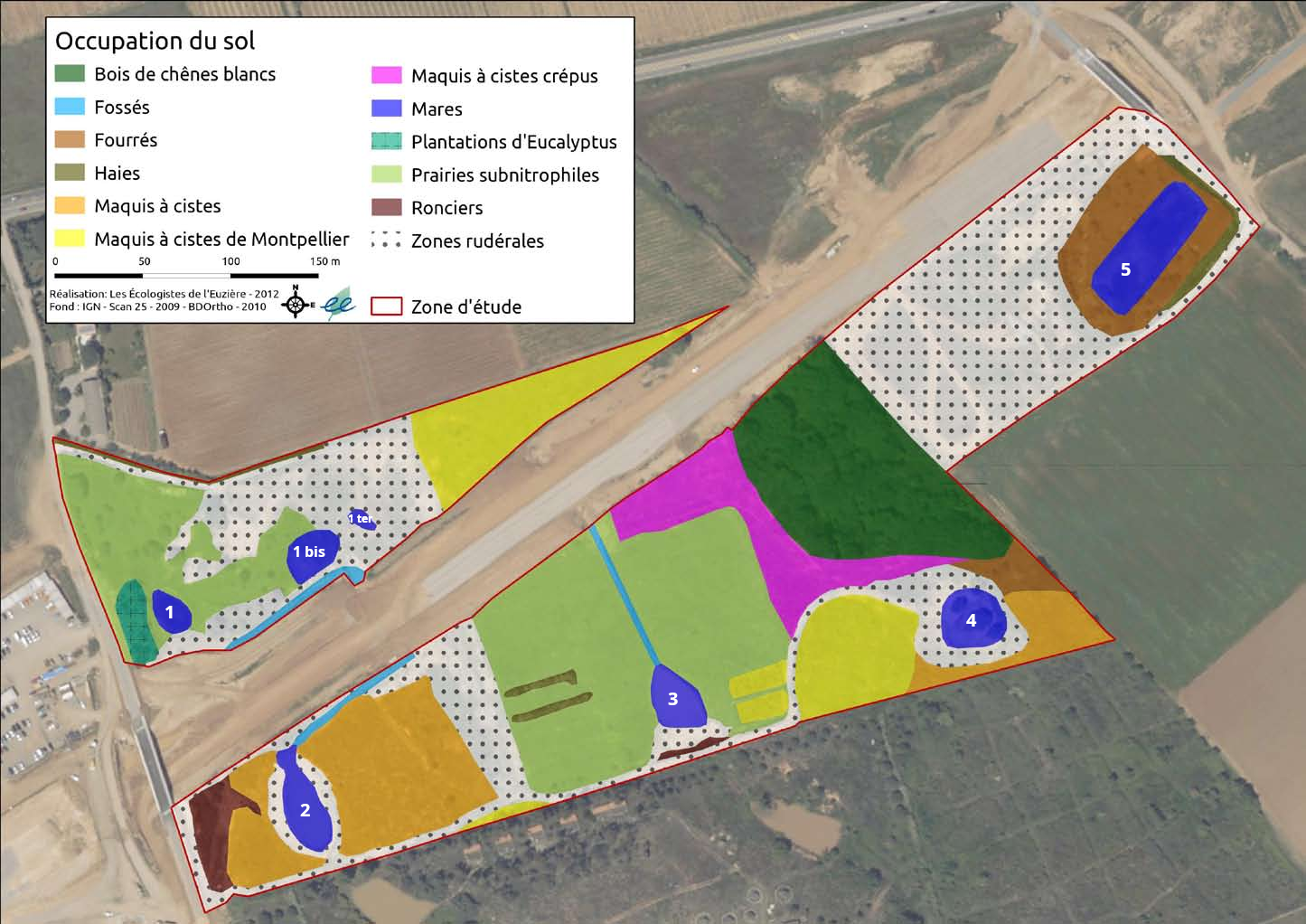 - 2008 : création d’un réseau de 5 mares par la DRE LR, encadré par les Écologistes de l’Euzière